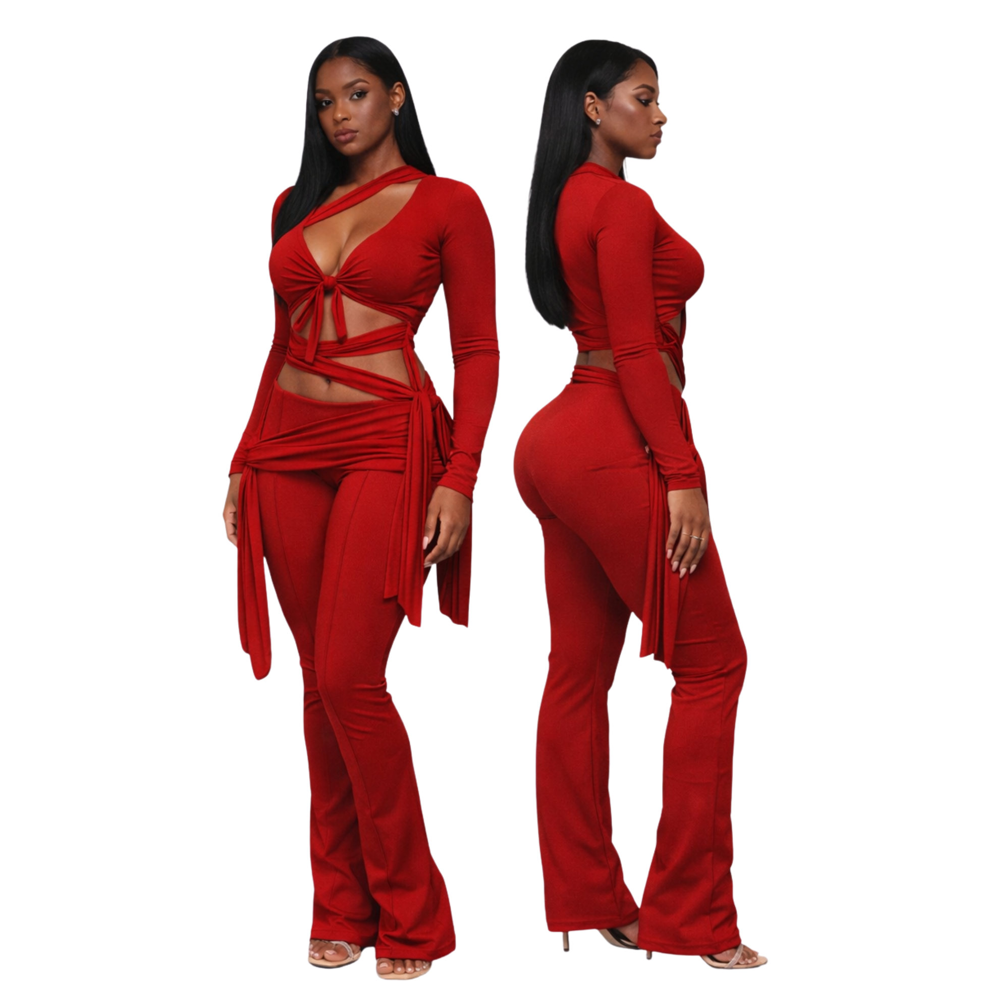 Our Knit Wrap co-ord is a must have! The top features a wrap that ties around the waist, ruched long sleeves, and ties on the wrist - the pant features a wrap around tie at the hip, along with that ruching detail that we all love on the back for a little enhancement.